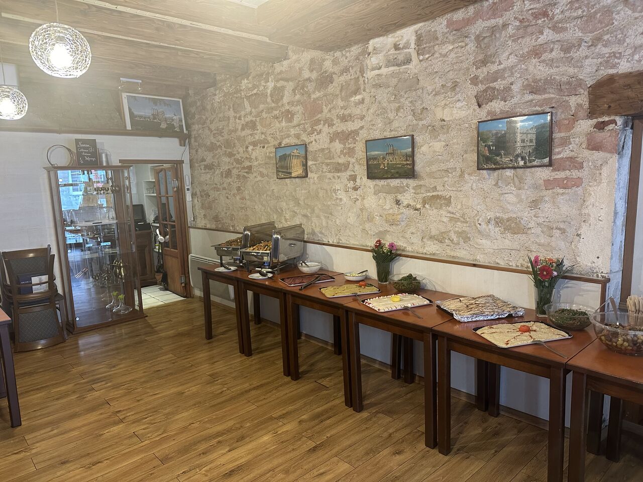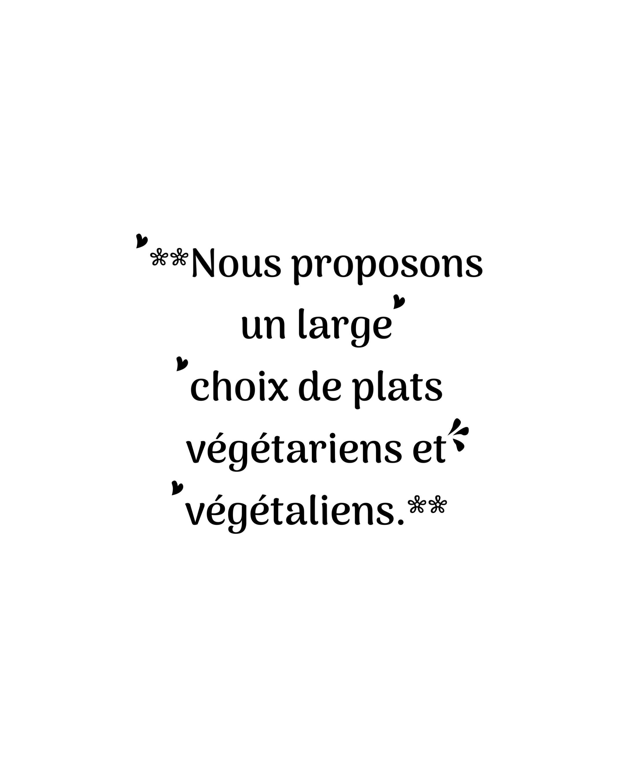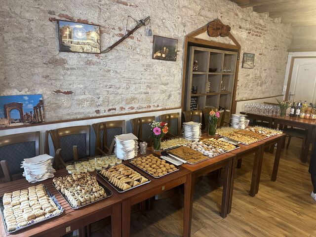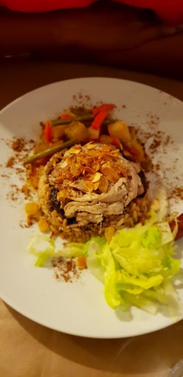 Sa culture reste libanaise, c'est pourquoi il vous propose une cuisine aux mille saveurs, variée, non épicée, avec beaucoup d'herbes (menthe, persil, basilic, coriandre, taboulé, hommos purée de pois chiches, feuilles de vigne farcies, kebbeh (boulettes de viande), montabal (caviar d'aubergines), grillades, etc.